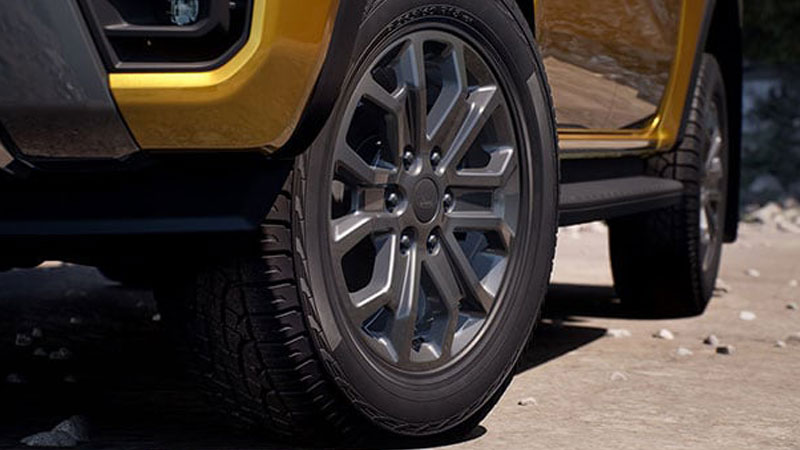 Bộ la-zăng hợp kim 17 inch hầm hố dành cho đường địa hình lắp với lốp xe BF GoodRich All-Terrain K02 hiệu năng cao danh tiếng (kích thước 285/70 R17). Dù vượt núi đồi hay chạy tốc độ cao, đều đáp ứng trong mọi điều kiện.